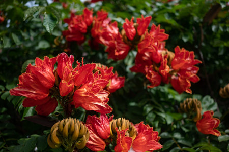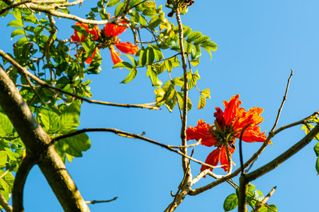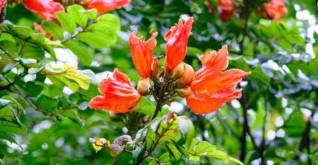 Spathodea campanulata also called africal tuliptree, tree with beautiful red bell flowers, tulips shaped