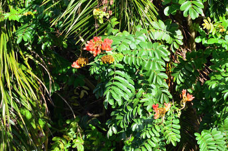 Tropical flowering plant Erythrina crist-galli: Common name Coral Tree - Flame Tree.