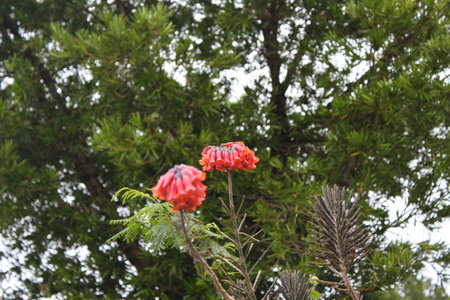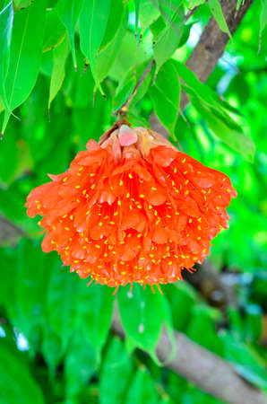 Unique red flowers bloom in the rain forest