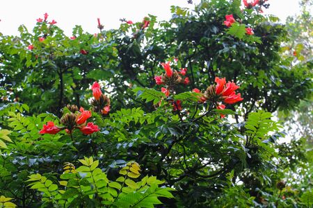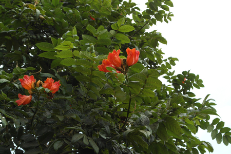 African Tulip flowers and trees close up, photo taken in malaysia