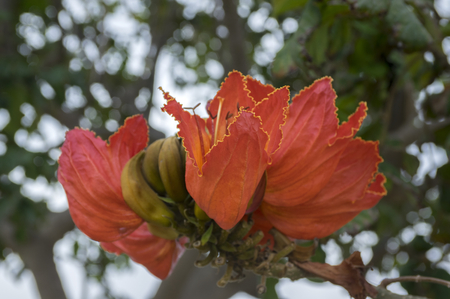 African Tulip Tree (Spathodea campanulata) flower on Tenerife.