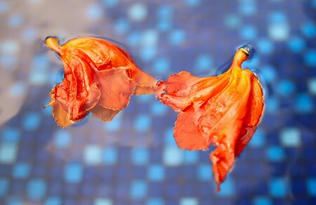 Orange flower petal on the floor, closeup of photo.