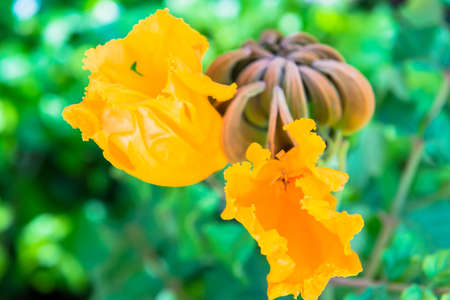 Spathodea campanulata, is commonly known as the African tulip tree blossom in forest.