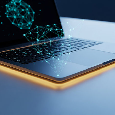 Stylized digital illustration of a complex neural network with glowing spheres and connecting lines on a dark background. Represents artificial intelligence, data science, and digital communication systems. Ideal for tech, innovation, and machine learning themes.