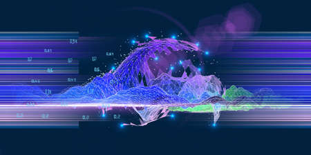 Big data. Abstract background analyze polygonale algorithm artificial intelligence data. Quantum cryptography concept with colorful grid and blurred lines. Analytics algorithms banner for science, technology and bussines. Blockchain.