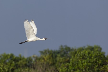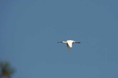 Common spoonbill flying, Platalea leucorodia