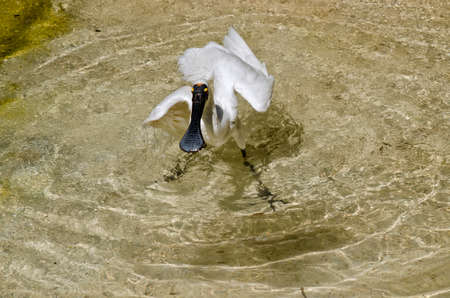 the royal spoonbill is cooling off in the water splashing about