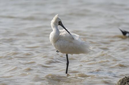 Black-faced Spoonbill at waterland in shenzhen,china.