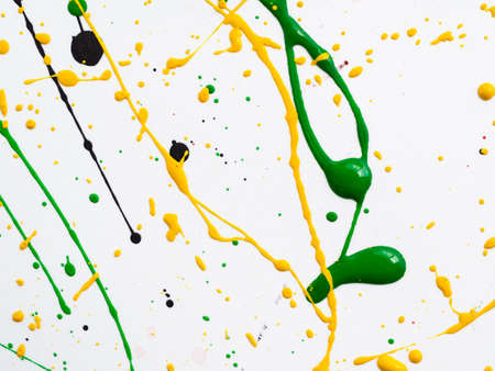 splashed of spilled yellow green red black paint. expressionism