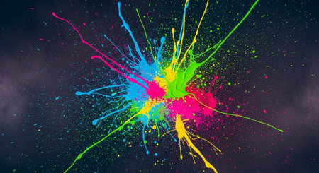 Vibrant paint splatter explosion against a dark background