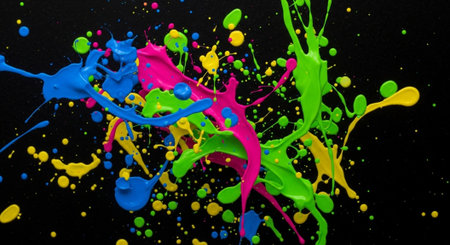 Vibrant paint splatter background with energetic colors, perfect for an artistic and dynamic feel