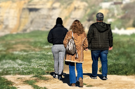 Tel Aviv Israel January 11, 2020 View of unidentified people walking on Herbert Samuel Promenade in Tel Aviv in the afternoon