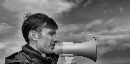 A person passionately delivering a message with a Megaphone.