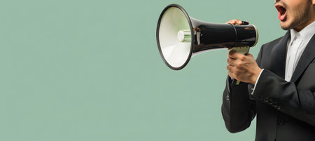 A person passionately delivering a message with a Megaphone.