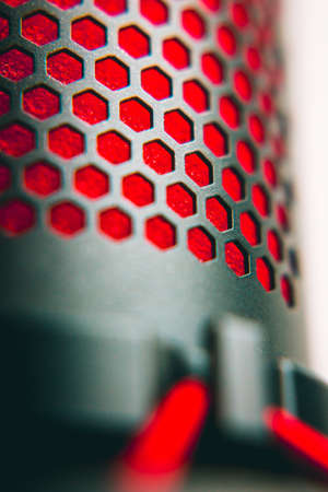 metallic mesh on the audio column closeup, texture