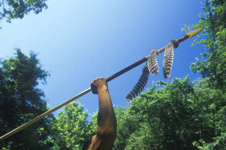 Native American Cherokee holding a spear, Tsalagi Village, Cherokee Nation, OK