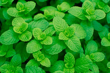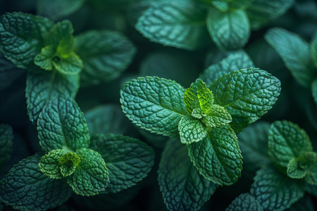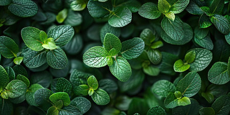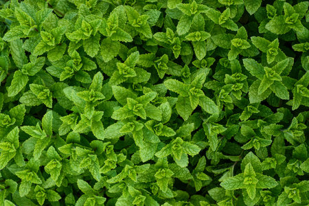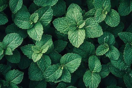 Top view of verdant fresh mint leaves creating a natural green textured background