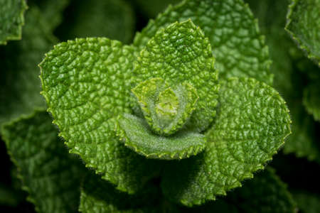 Fresh Green Peppermint leaves on the Dark background.