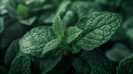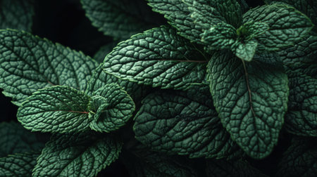 Close-up of lush, vibrant mint leaves showcasing their intricate texture and deep green color, perfect for culinary or natural themed projects.