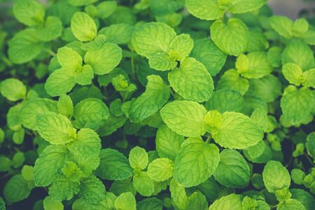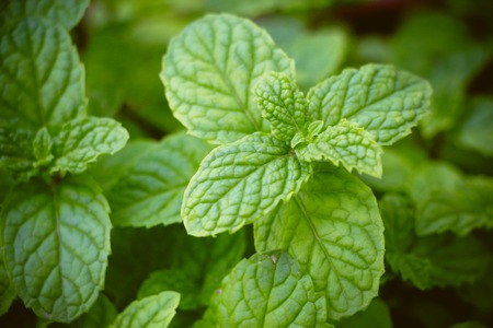 Closeup Fresh mint in herbs and vegetable garden