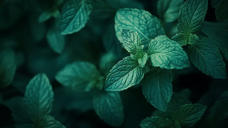 Vibrant green mint leaves background illustration with detailed texture for freshness and natural decor concepts.