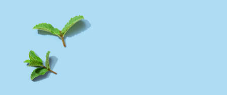 fresh mint leaves on blue background