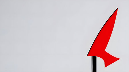 Red arrow is inserted into the side of a white wall, providing a striking visual contrast