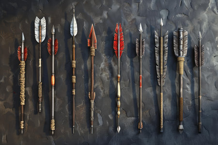 AI Generated. Ancient arrowheads displayed on dark stone