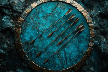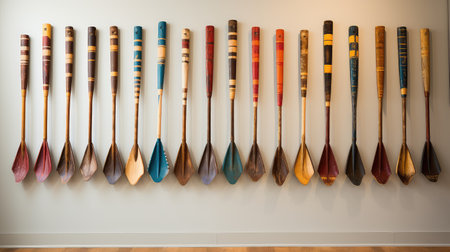 This image features colorful decorative targets with arrows arranged creatively on a flat surface, emphasizing vibrant colors and geometric designs for artistic appeal.