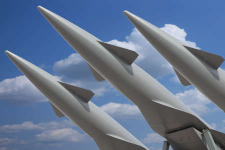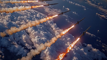 Terrifying ballistic missiles streaking across the sky.. Generative AI