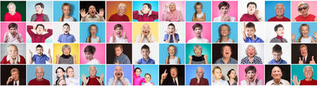 Diverse people with different emotions. Collage of diverse multi-ethnic and mixed age range people expressing different emotions