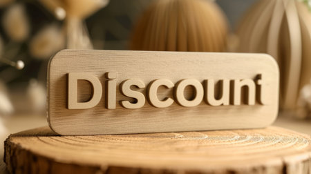 10% off. wooden ten percent. wooden ten percent on white background. 3D render.