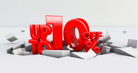 red 10% Number isolated on white background .10 ten percent sale. Black friday idea. up to 10%. 3D render