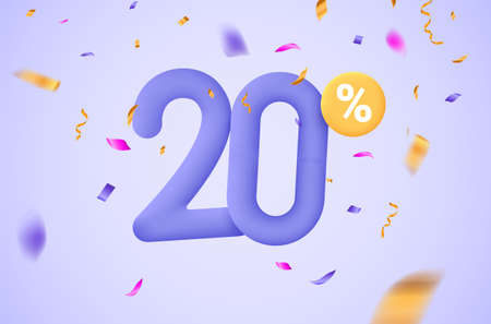 20 percent Off. Discount creative composition. 3d mega sale symbol with decorative objects. Sale banner and poster. Vector