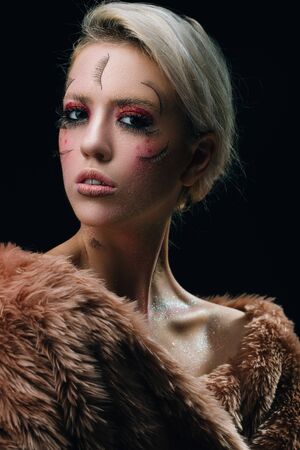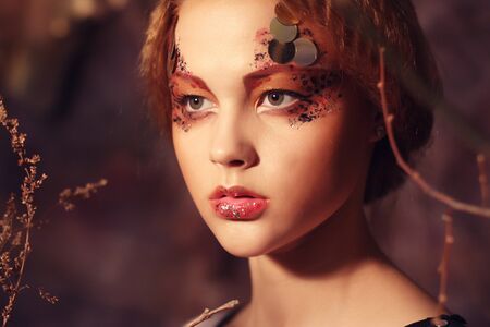 Portrait of a beautiful young woman with fantasy make-up.