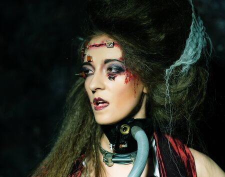 Scary portrait of the woman. Demon theme on Halloween
