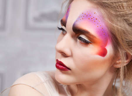 Close-up portrait of beautiful girl with creative make-up.