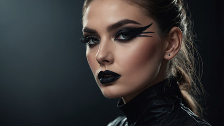 AI Generated. Fashion Beauty Model Girl with Black Make up and Long Lushes