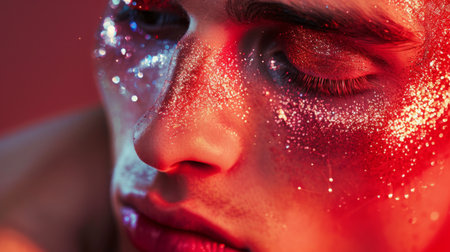 Man with Colorful Glitter Makeup Closeup