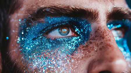 Close-Up of Male Eyes With Blue Glitter