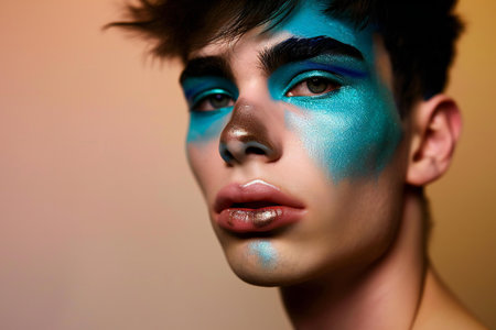 Close-up portrait of a beautiful young man with creative make-up