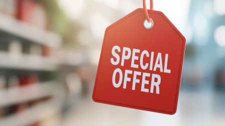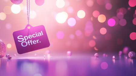 A vibrant tag reading Special Offer hangs against a dreamy backdrop of shimmering bokeh lights, creating an eye-catching scene perfect for advertising promotions or sales events.