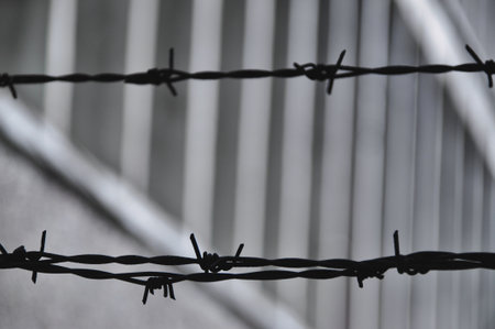 Barbed wire around prison walls