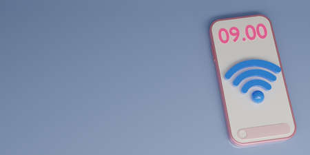 blue Wifi icon on smartphone isolated on blue background. Wifi sign. Wi Fi Wireless Network Symbol. 3d rendering