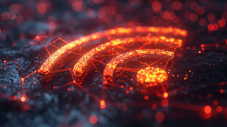 A digital illustration showcases a stylized wireless signal icon, featuring bars of varying heights. The design employs a gradient of blue to green, suggesting signal strength. The composition uses selective focus on a dark background. This image is suitable for use in technology-related projects, presentations, and website designs.