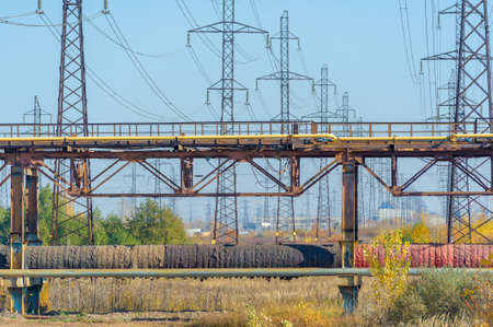 Perspective view of metal bridge and industrial pipes