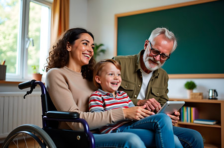Family Sharing Tablet Moment with Wheelchair User