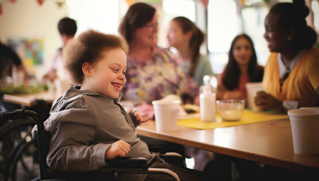 Joyful celebration: child in wheelchair celebrate birthday, a day of happiness and inclusion, love and festivities, every moment is filled with laughter and cherished memories.