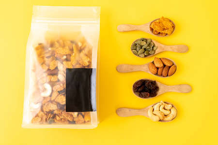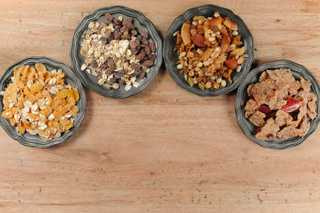 Delicious mix granola muesli cereal with fruits and nuts, healthy eating concept