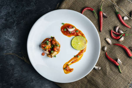 Beautiful and tasty food on a plate, exquisite dish, creative restaurant meal concept